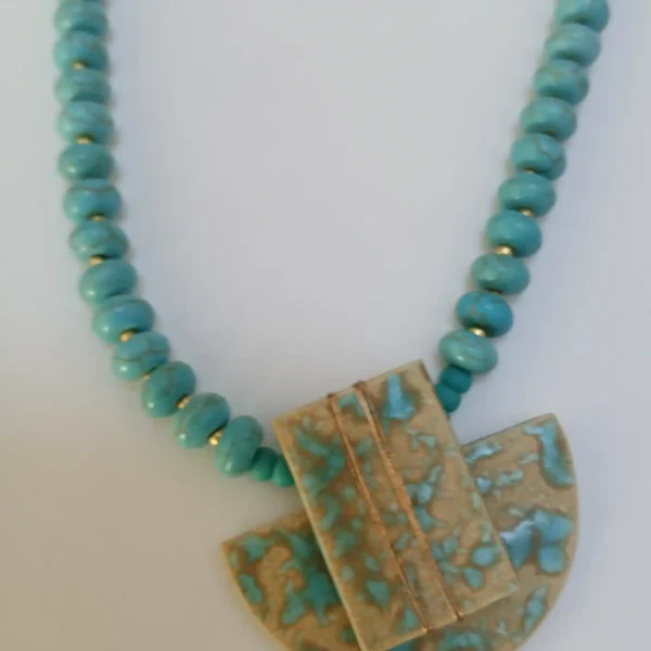 Necklace ceramic & magnesite with real turquoise | artist signed museum series Santa Cruz studio by Carol Kent