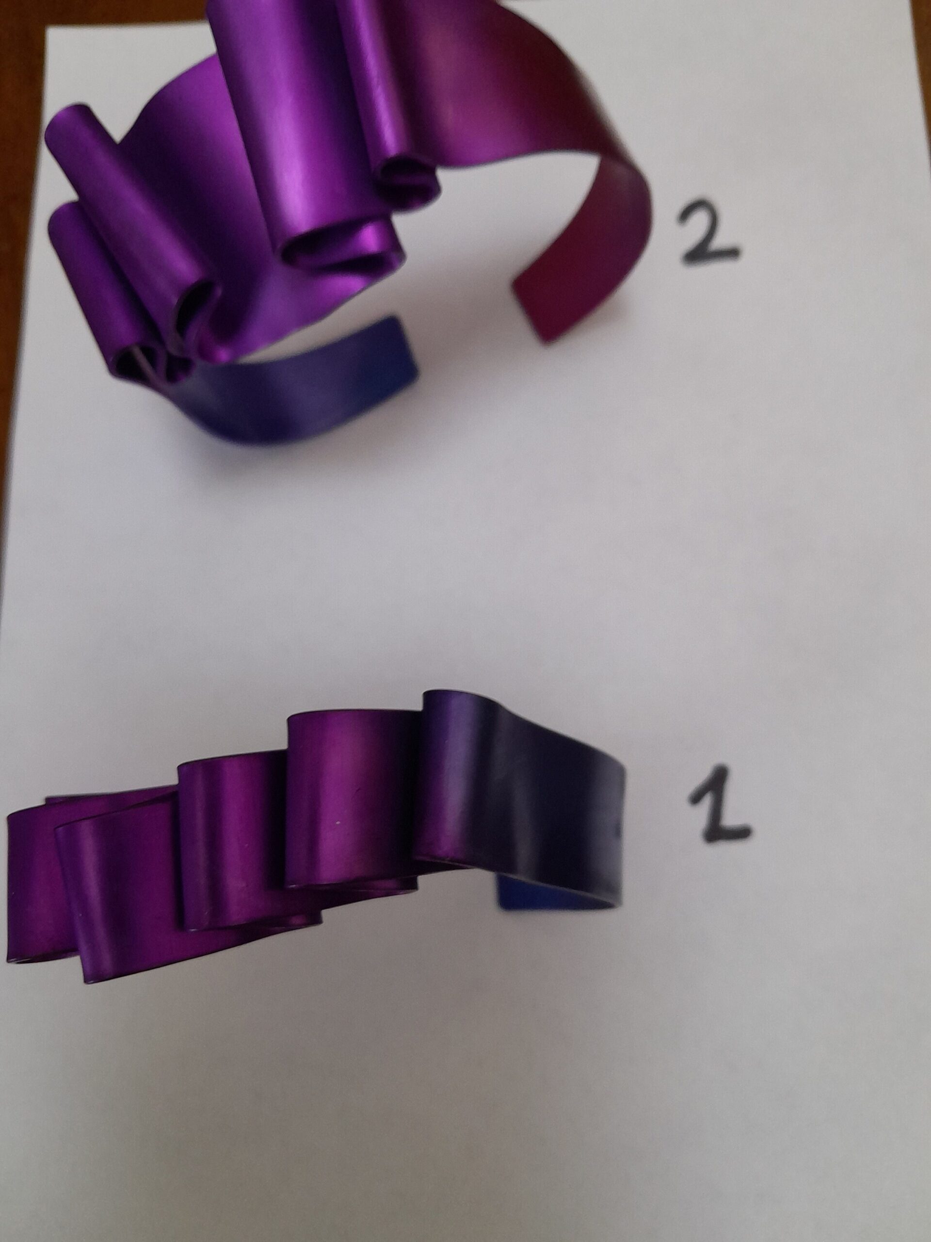 Deep purple hues aluminum bracelets. Anodized chip fade scratch resistant. Accent piece and handcrafted by Eclat