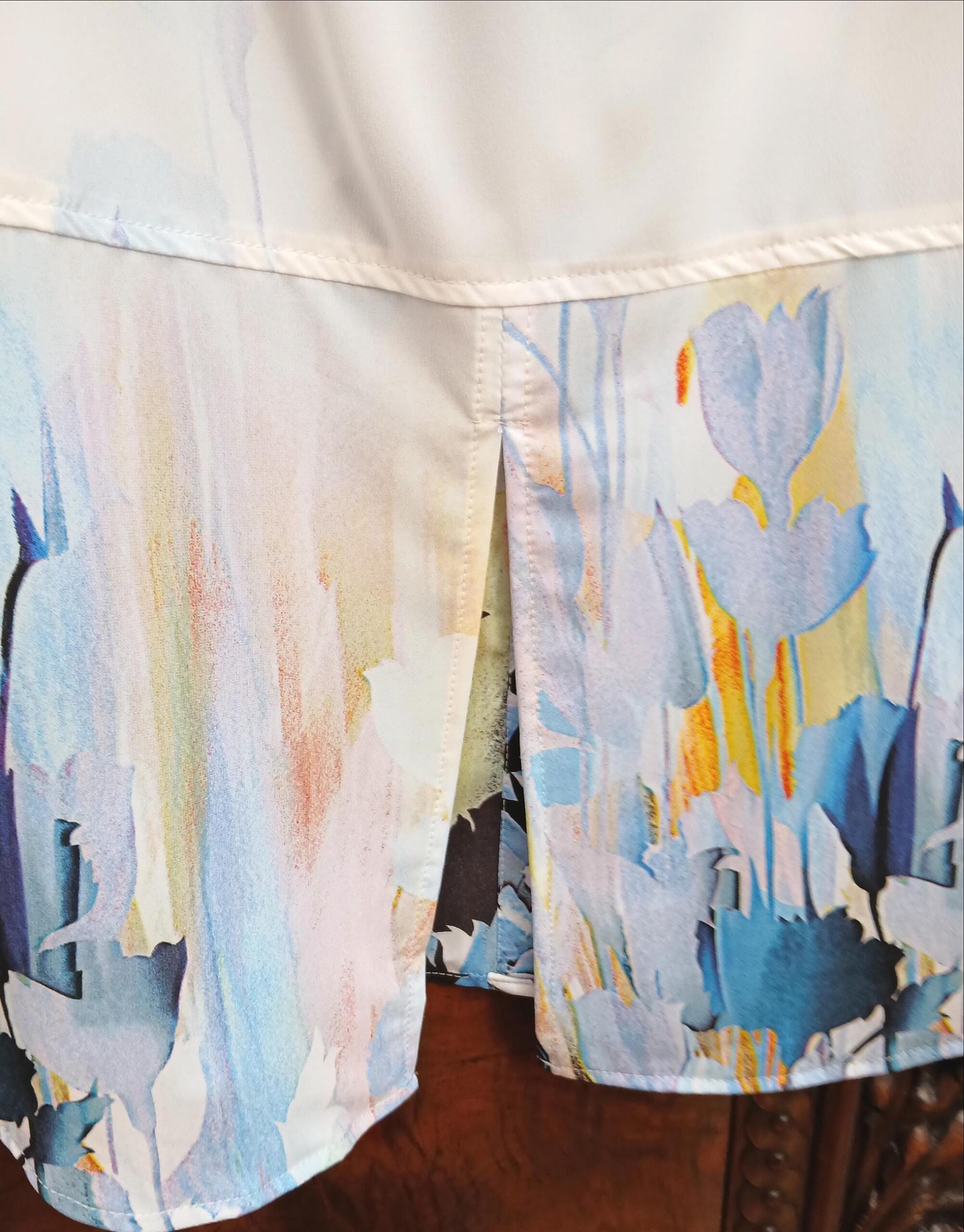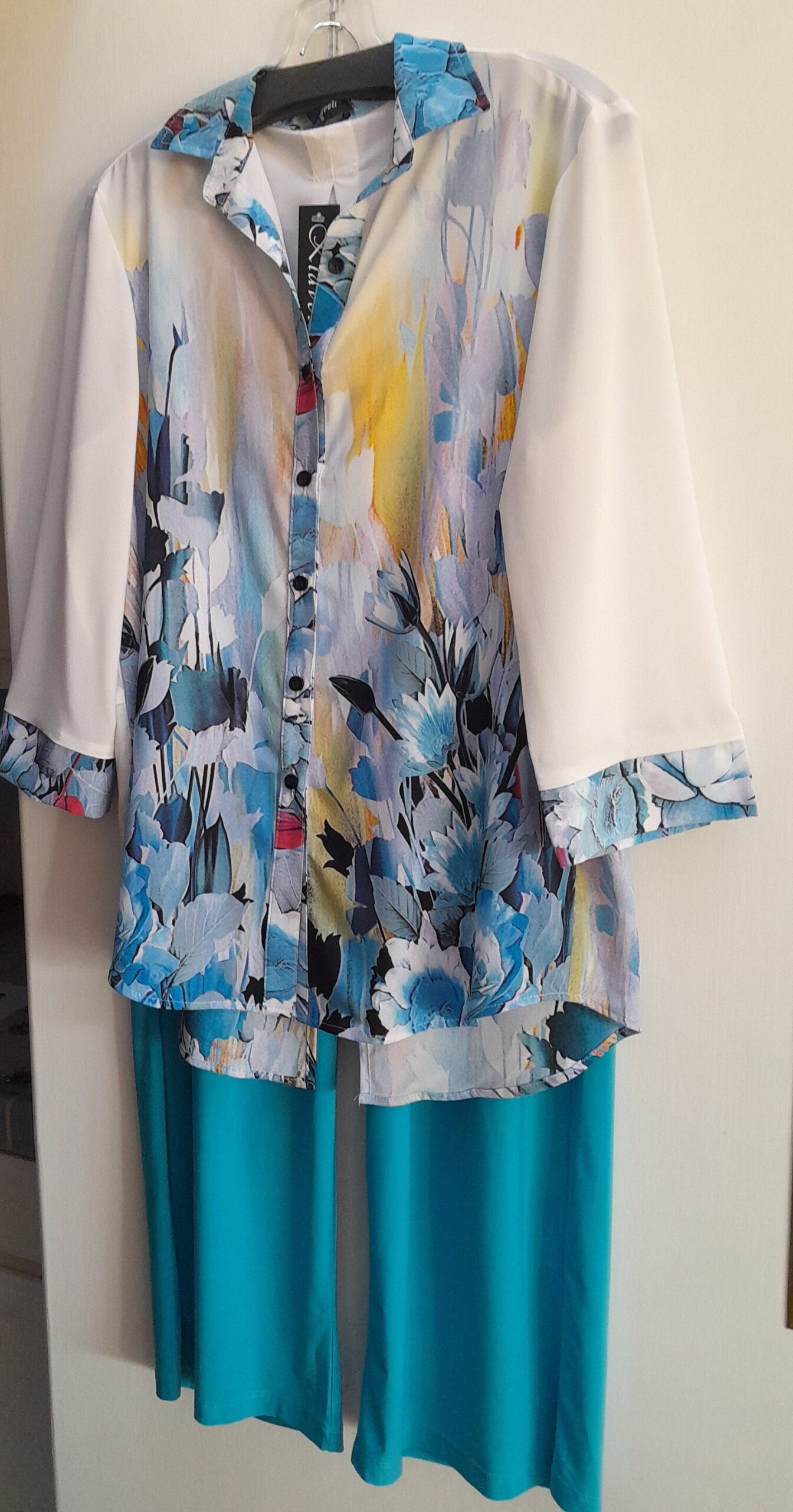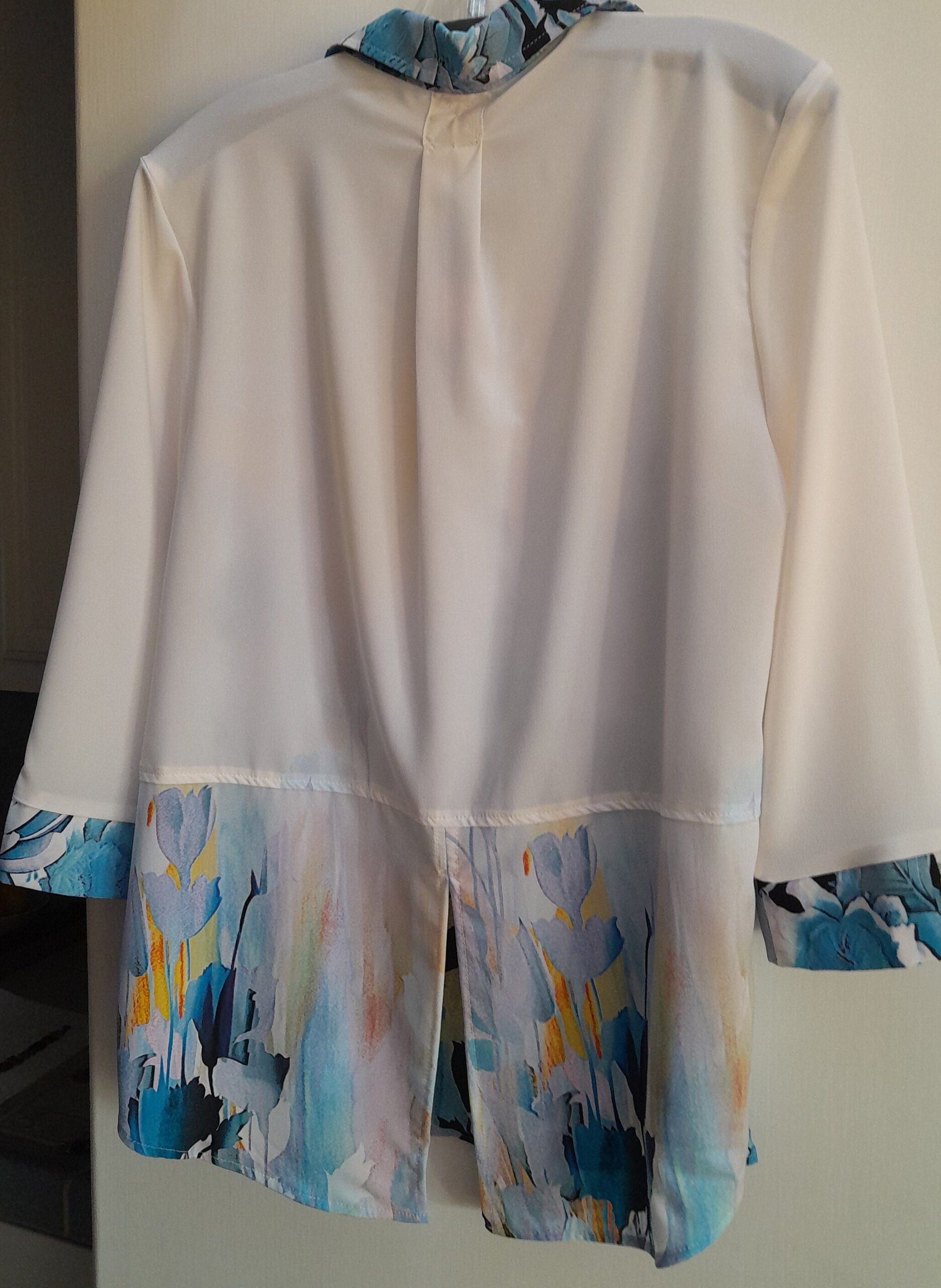 Exclusive print blouse in georgette, the best fabric and quality there is with Klaveli. Made in USA. Ck out other prints listed in same style listed. Can be ordered long or tab sleeve. Any occasion can be festive or casual. Free shipping.Available in XS to 1X