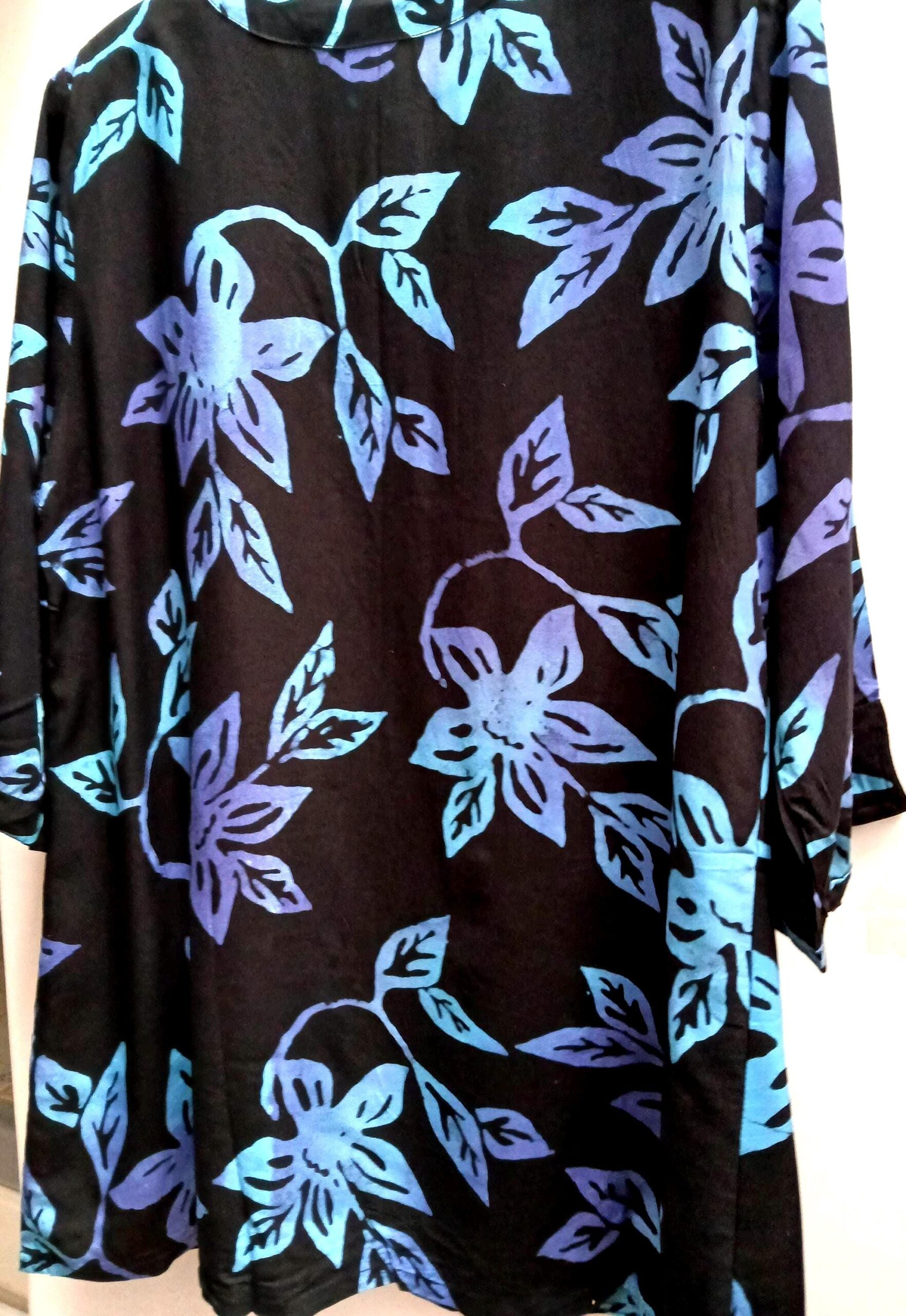 Be the first to review “Fairytale Tunic in hand batik black-blue rich floral print on plant based rayon. V-neck and 2 pockets. Nature lovers’ treat.” Cancel reply