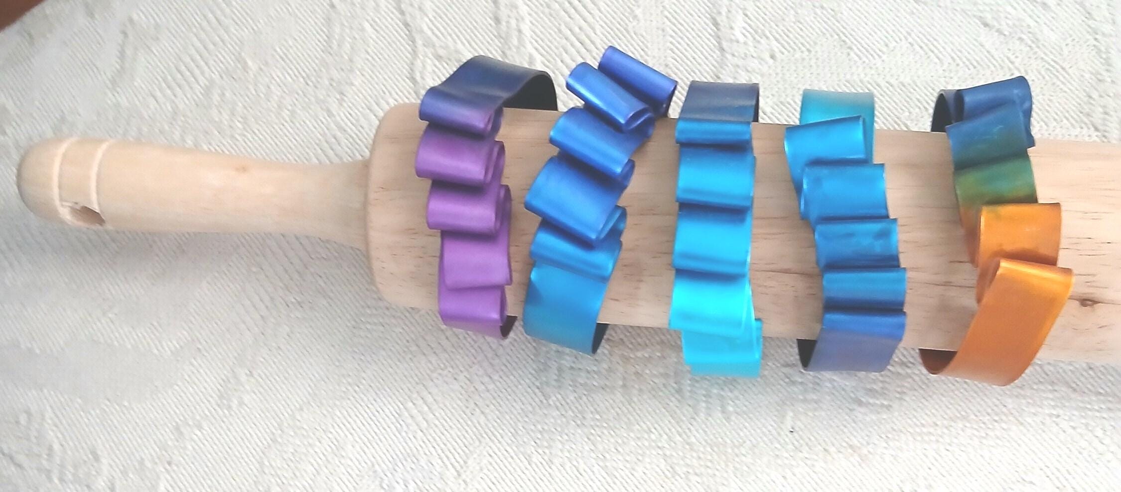 Light and bendable stunning colors and a little work of art for your special gift. You can pick this style and ask for 3 colors your friend likes, and Sylvi Harwin of Eclat will create it just for you. 5 in stock choose the number You like. Price is each. I support our local Artists and work with them hand in hand.