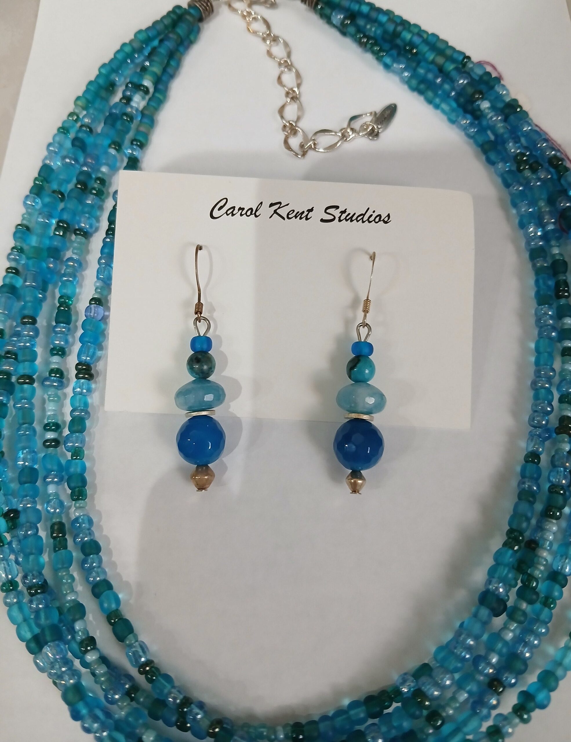 Be the first to review “Handmade necklace with five strands of turquoise crystals by California artist Carol Kent.” Cancel reply