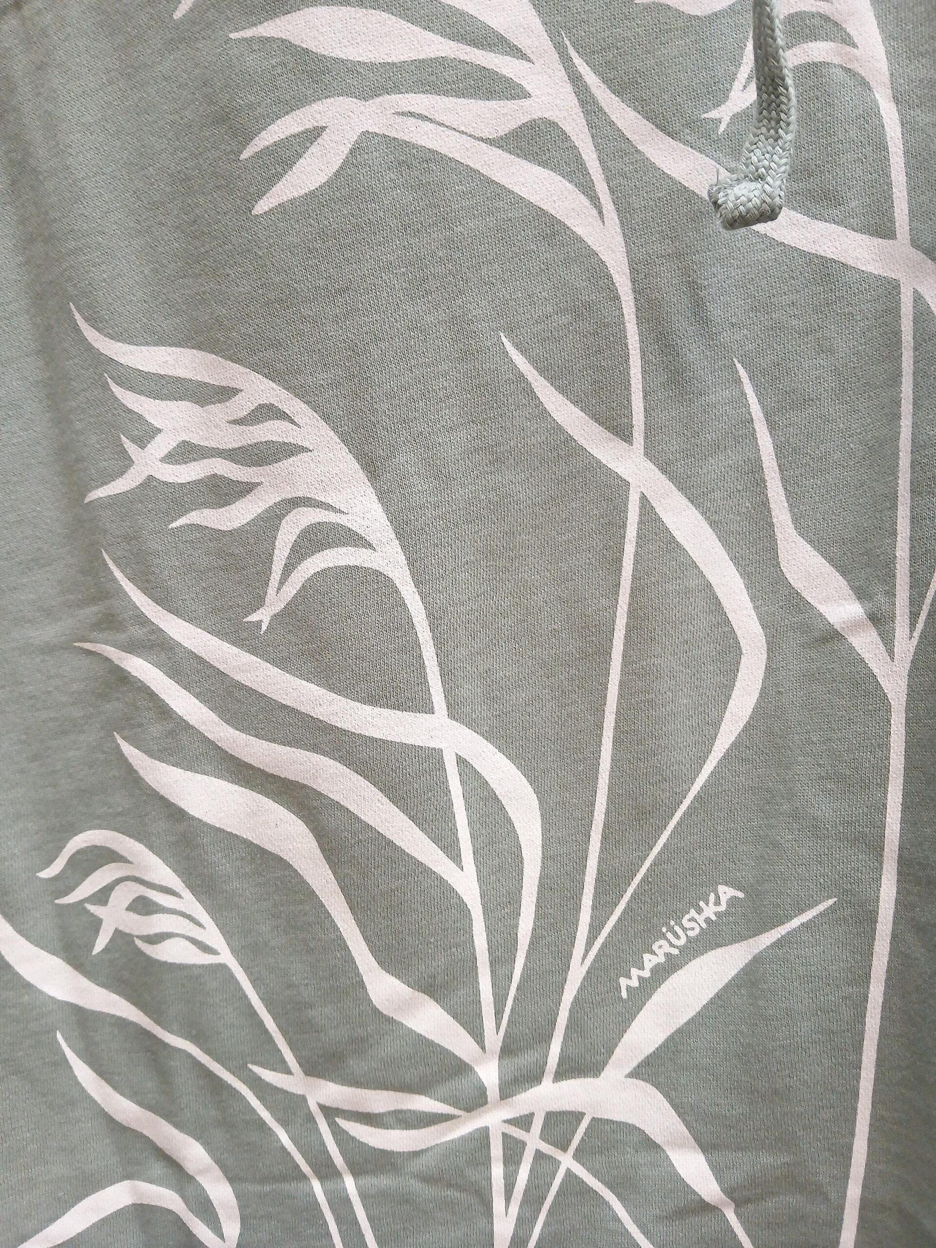 Be the first to review “Marushka. Longer length body style. Hand screened light fleece hoodie. Sage with seagrass design.” Cancel reply