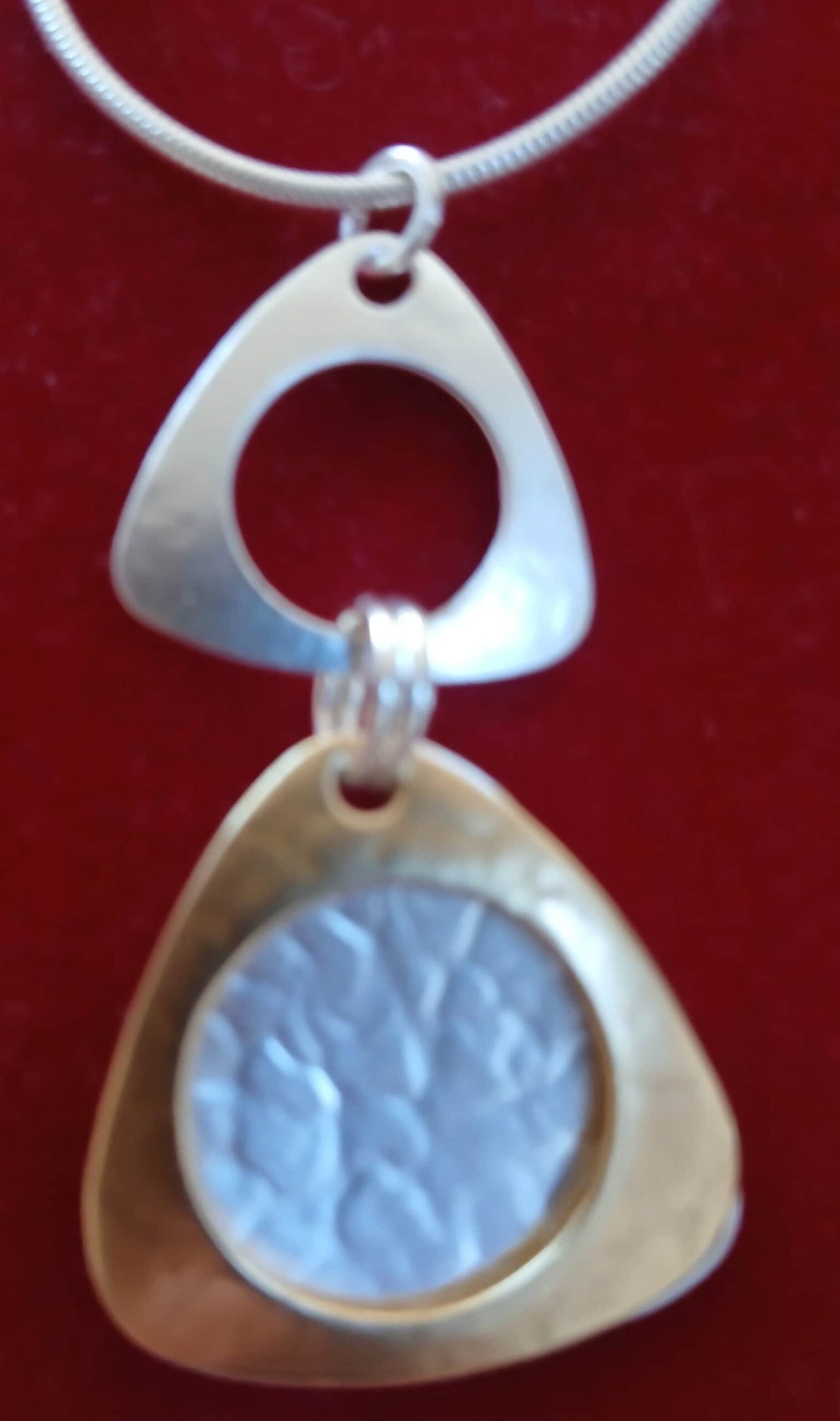 You may choose Left, Middle, or Right—each with its own unique character. The middle necklace has been paired with a wide chain for added contrast and strength in design.