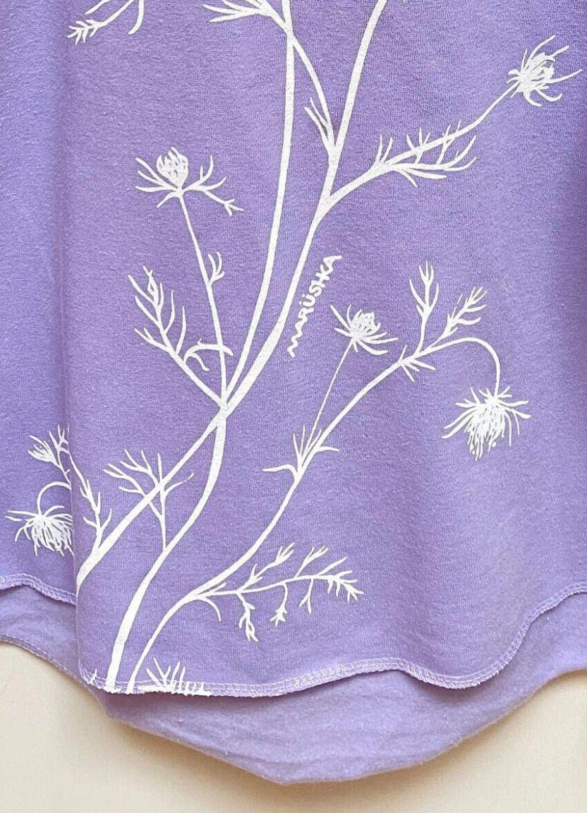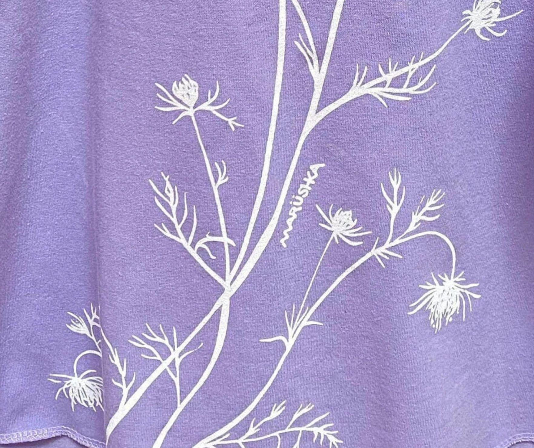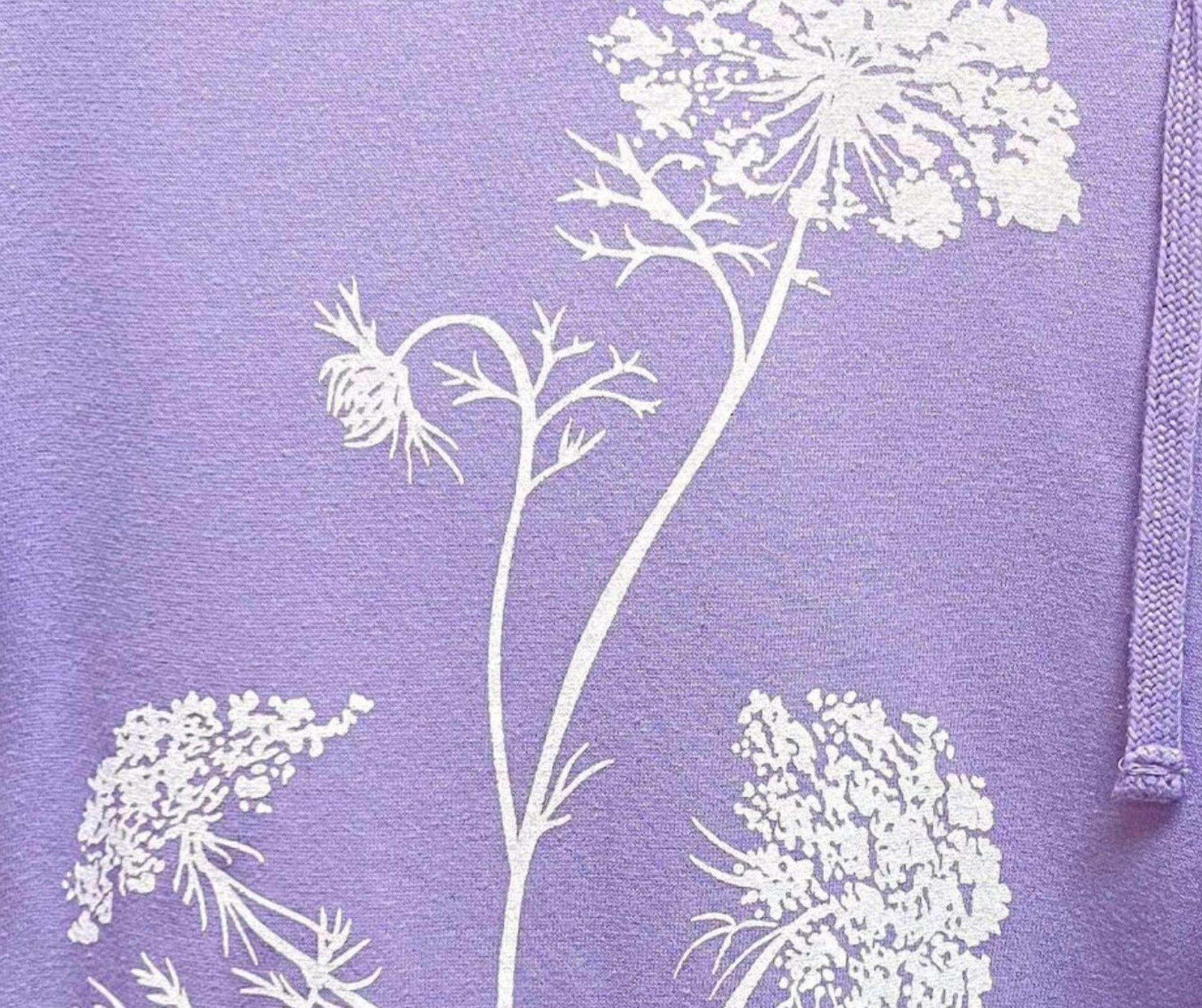 Queen Anne’s lace hoodie handprinted lavender fleece | notch neck lightweight sweatshirt soft cozy gift for her by Marushka