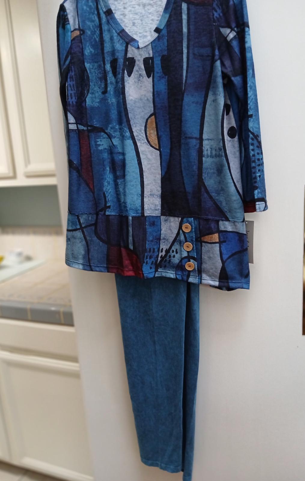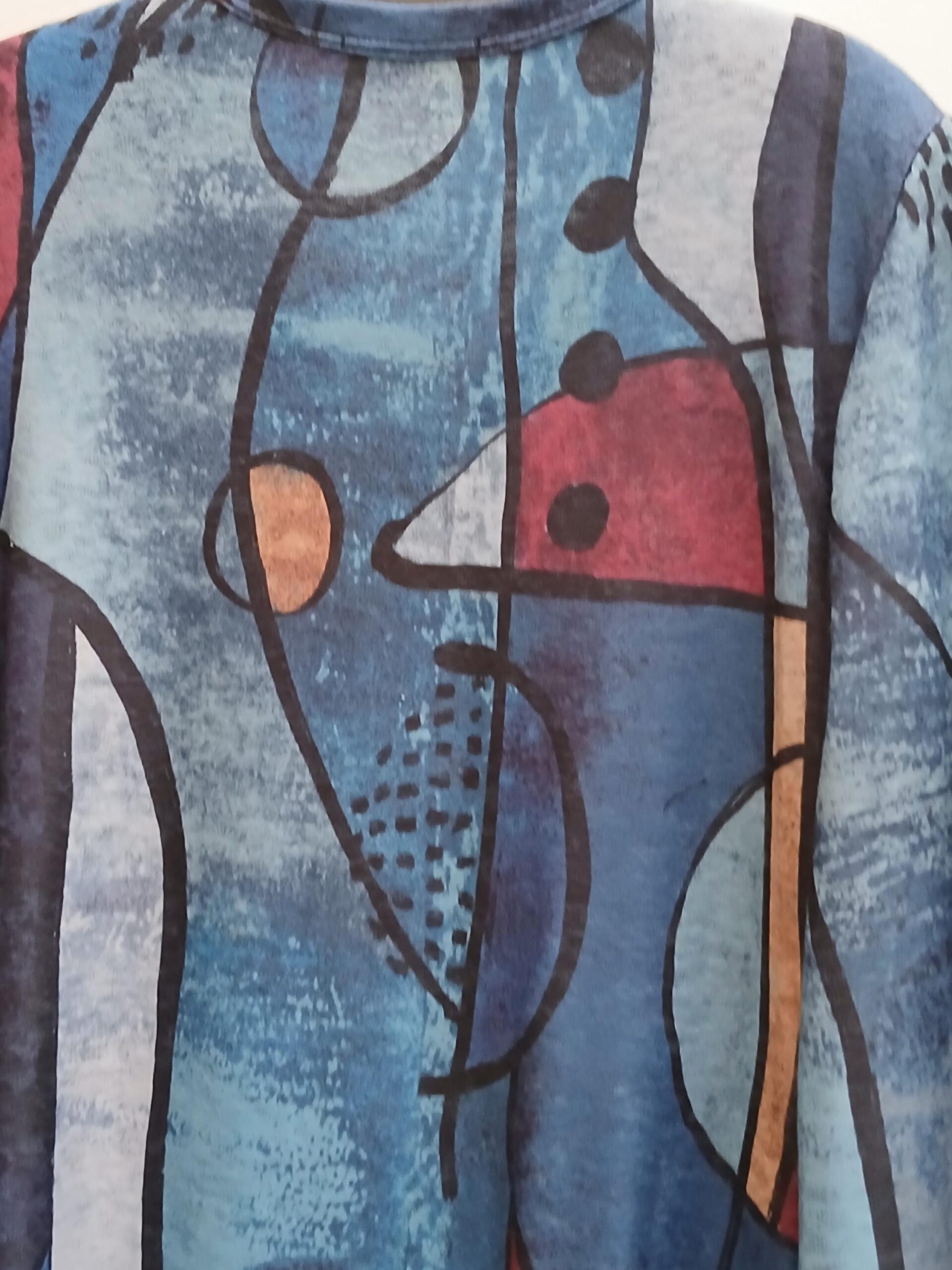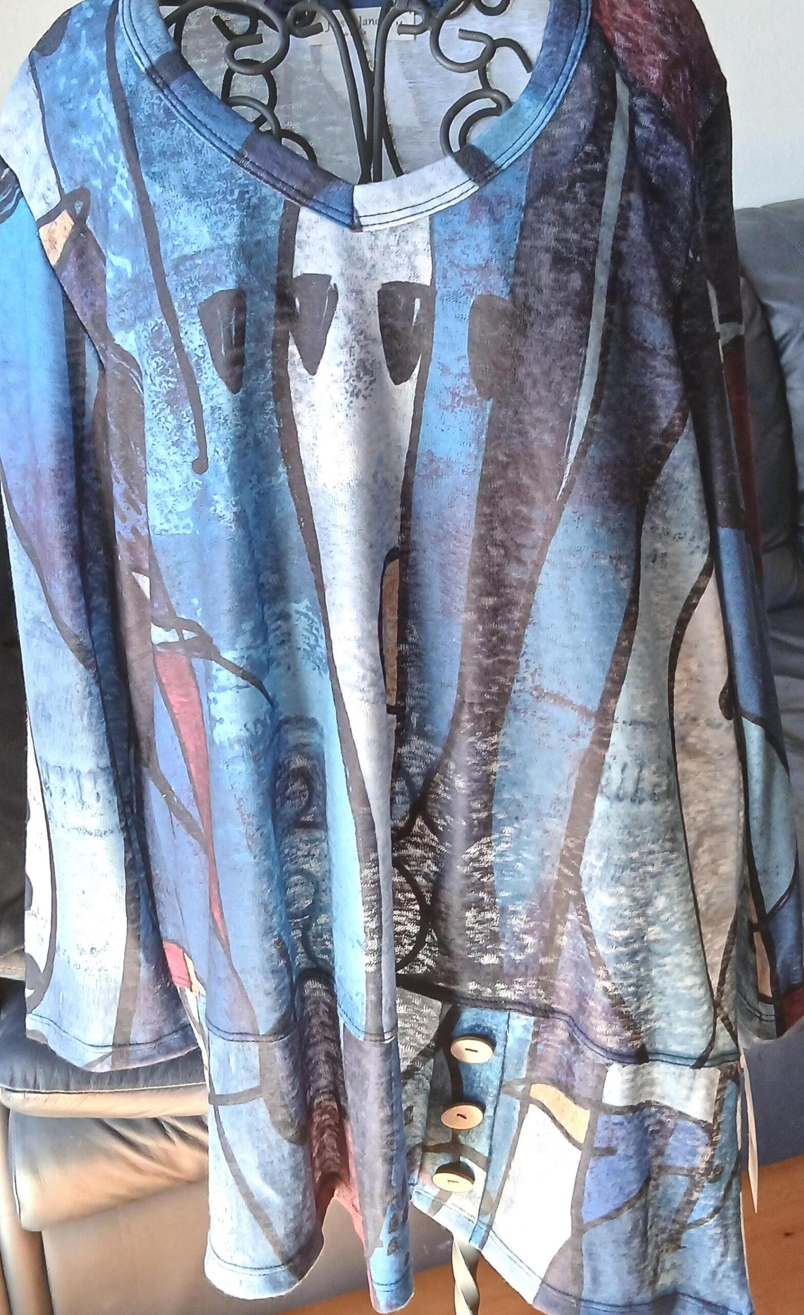Step into fall in this Sapphire tunic that is a striking piece designed in bold geometric tones that celebrate September’s birthstone.