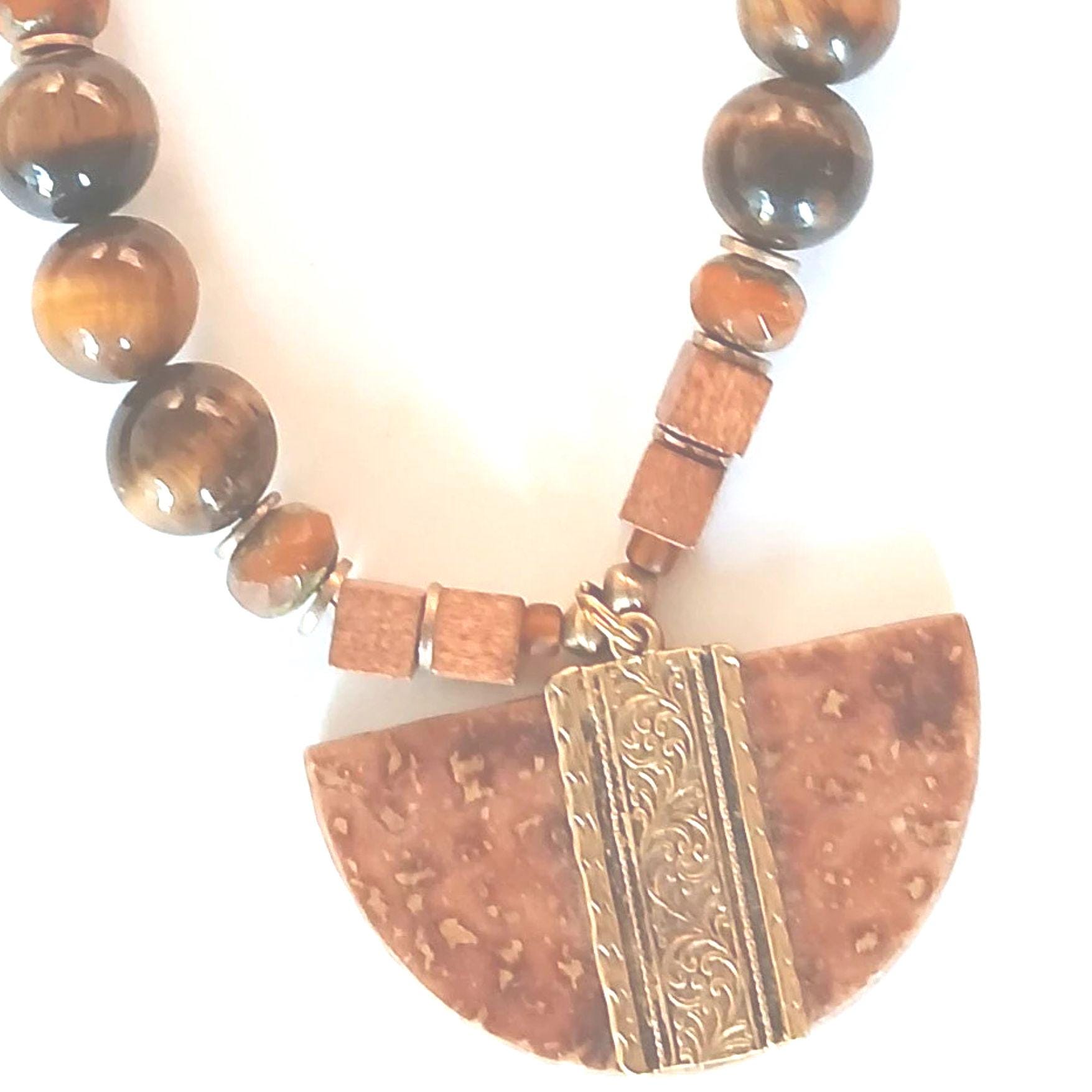 Tiger Eye Necklace Women | Artisan Handmade Ceramic Beads | Sustainable Gemstone Statement Jewelry | Unique Gift