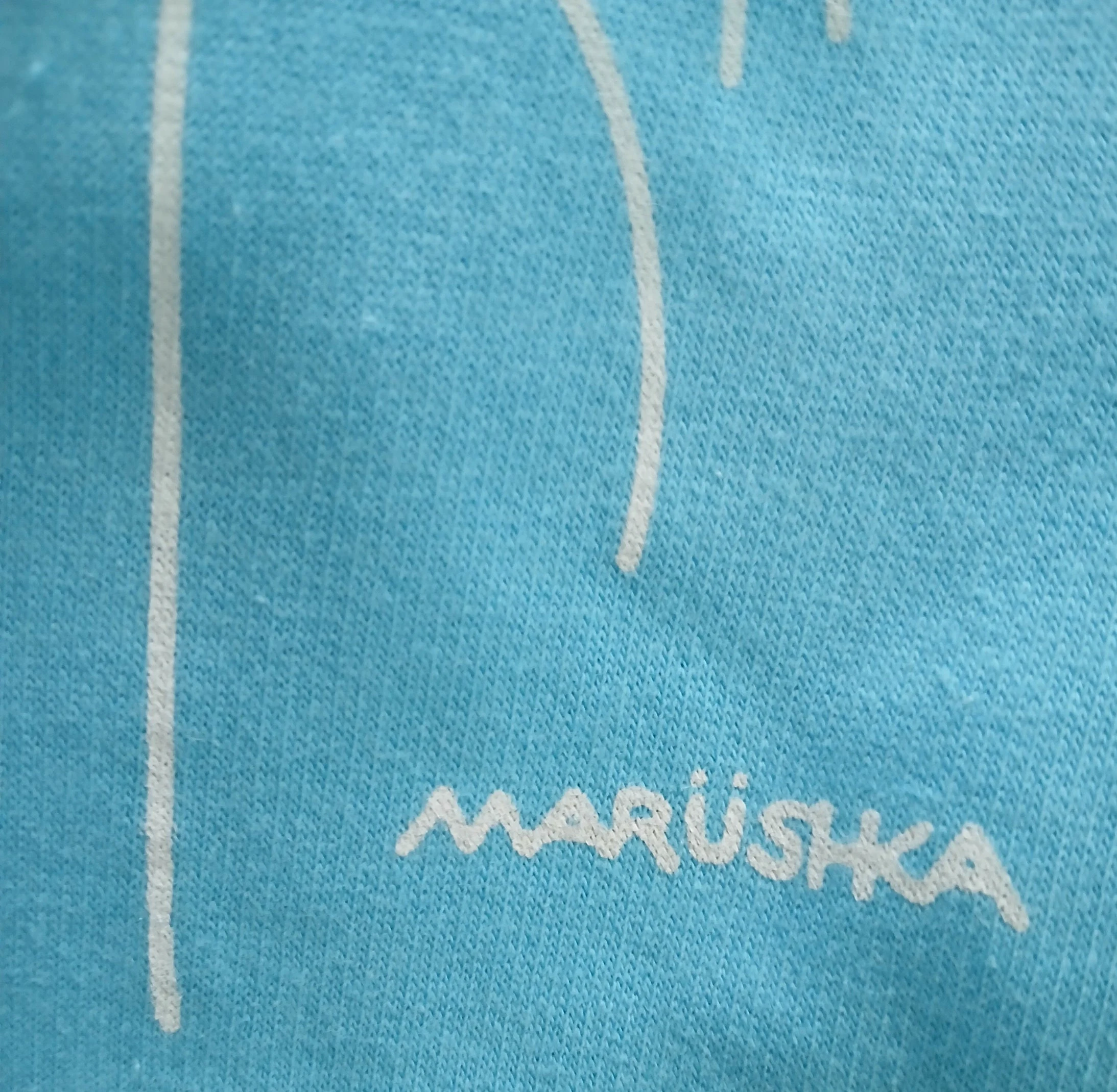 Design: Turquoise with silk-screened bike and flower motif.